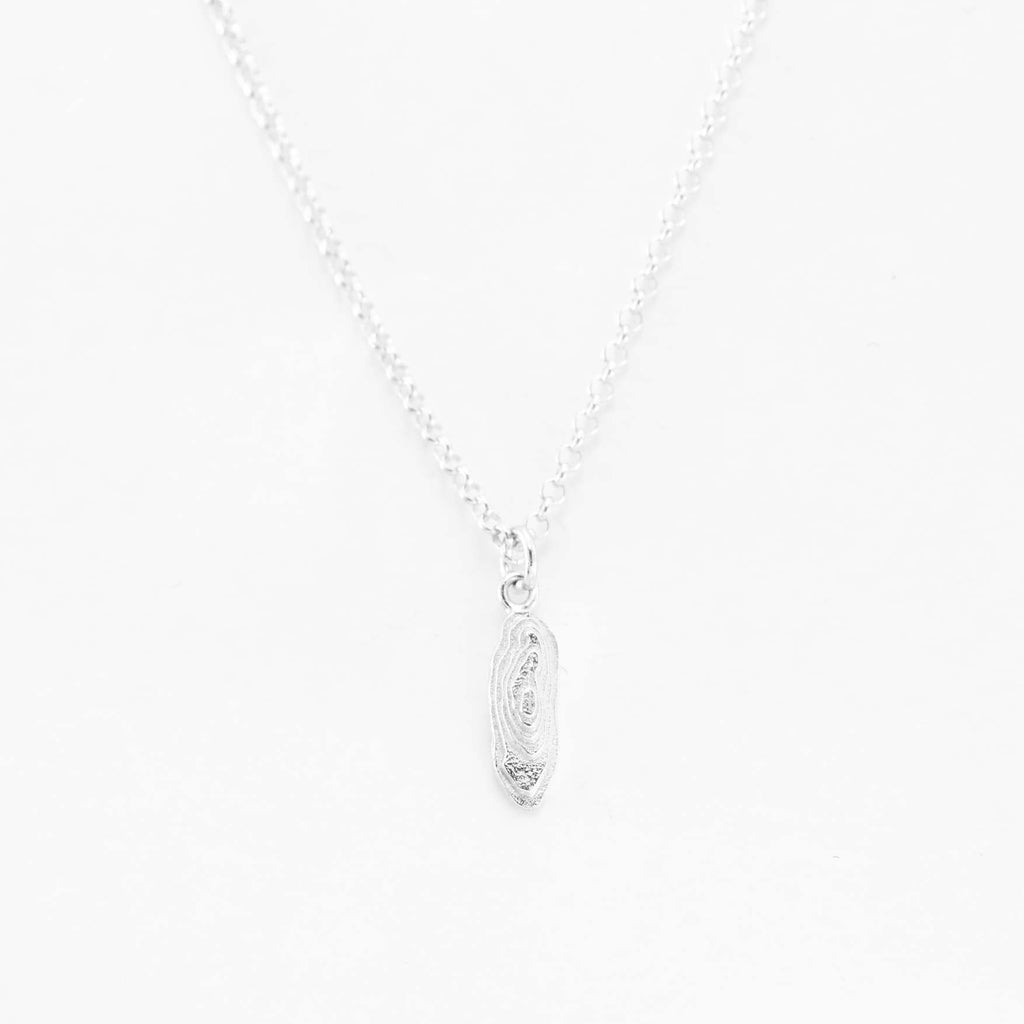 Modern, asymmetric silver necklace. Noitatunturi jewellery is a topographic map of the Noitatunturi fell in Lapland.