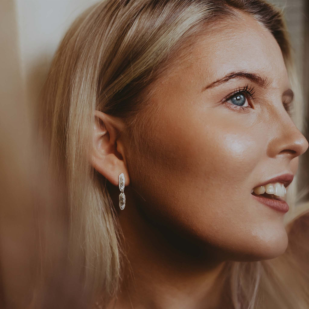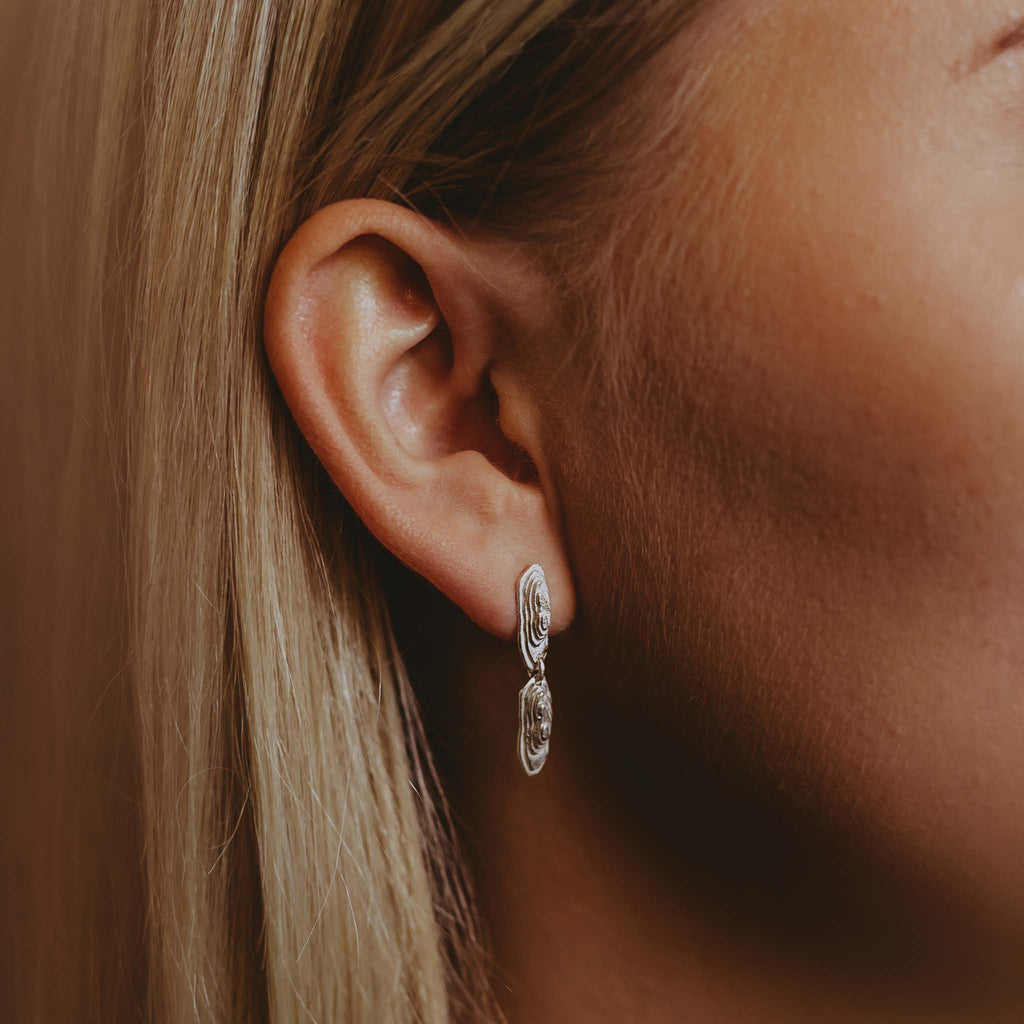 Modern, asymmetric silver earrings. Noitatunturi  jewellery is a topographic map of the Noitatunturi fell in Lapland.